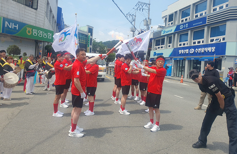 제62회 경상남도민체육대회 성화봉송 관리자 0 846 2023.06.08 16:44 제62회 경상남도민체육대회 성화봉송 시작 6/8 진행되는 육지구간 봉송명정동 구간에삼성요양보호사교육원 원장님이선두로 참여하였습니다.통영시에서 진행하는 경상남도민체육대회뜨거운 응원과 관심 부탁드립니다.링크 :https://blog.naver.com/tongyeongsi/223123318824