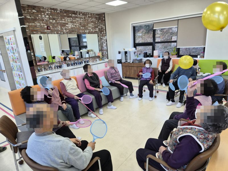옆에서 요양보호사 선생님들도 함께 참여하며